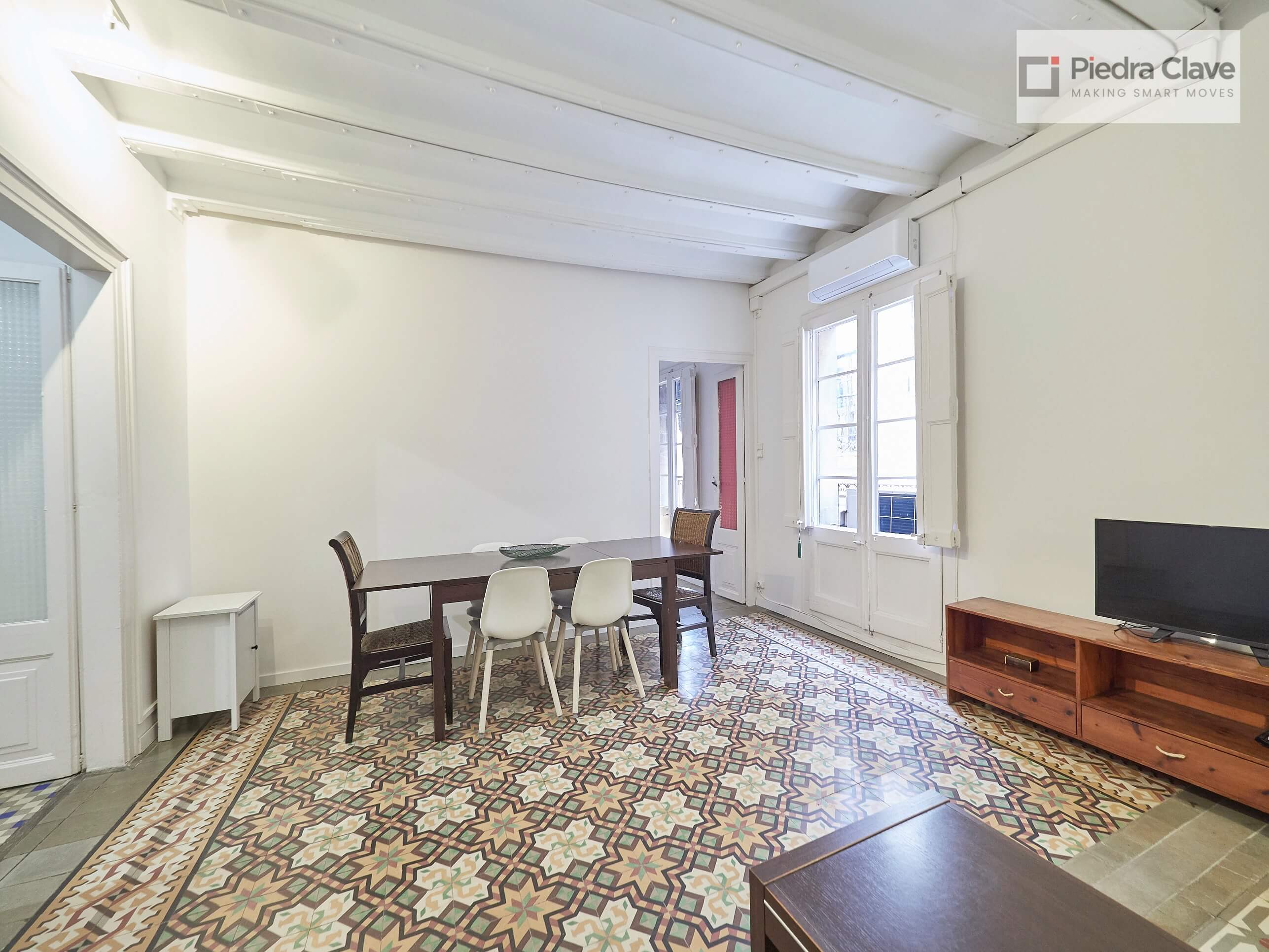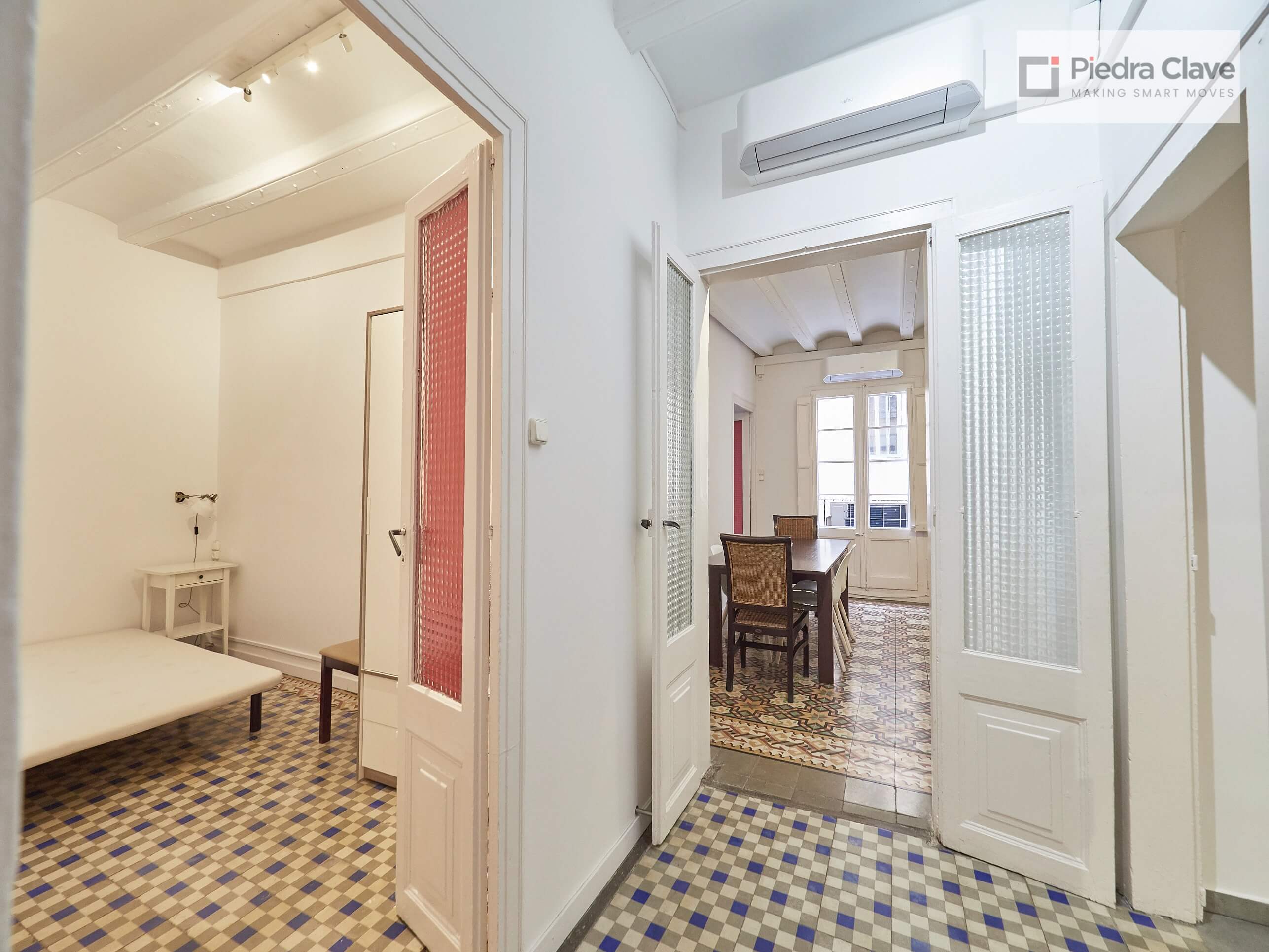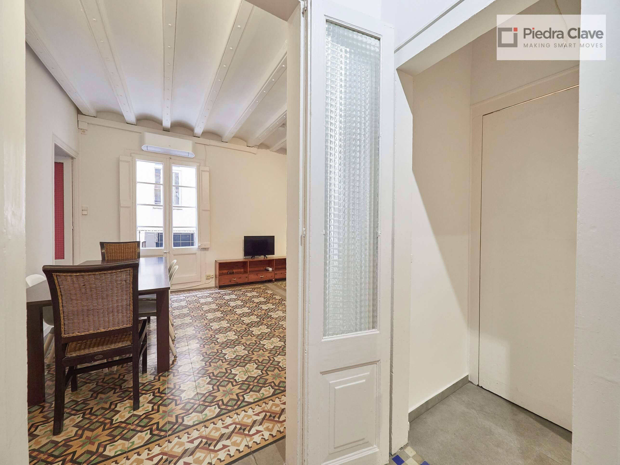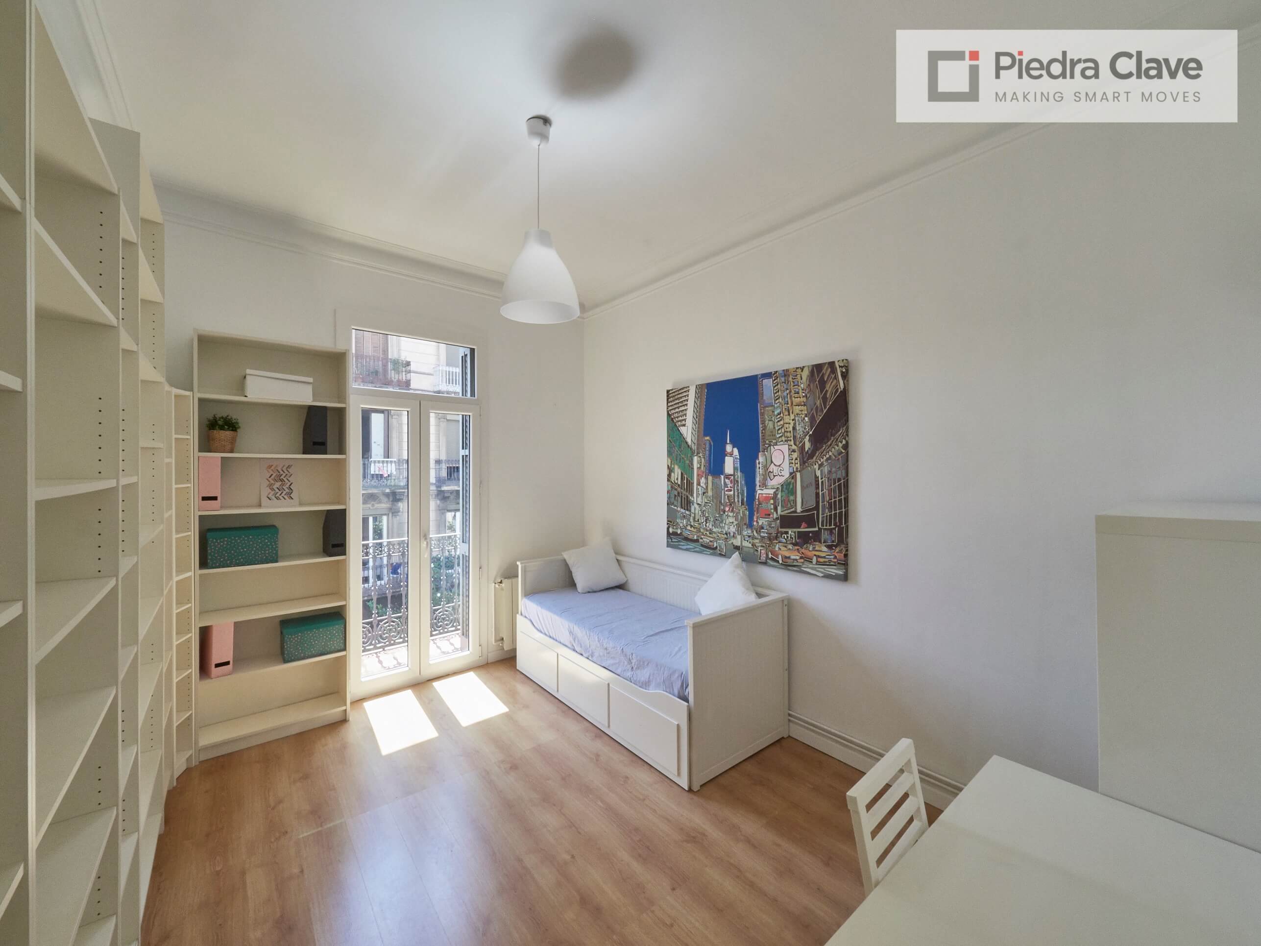 This apartment could not be better located with better light! It is in a classic corner of the Eixample. A short walk from Diagonal and Passeig de Gracia, and located in a very well maintained building.