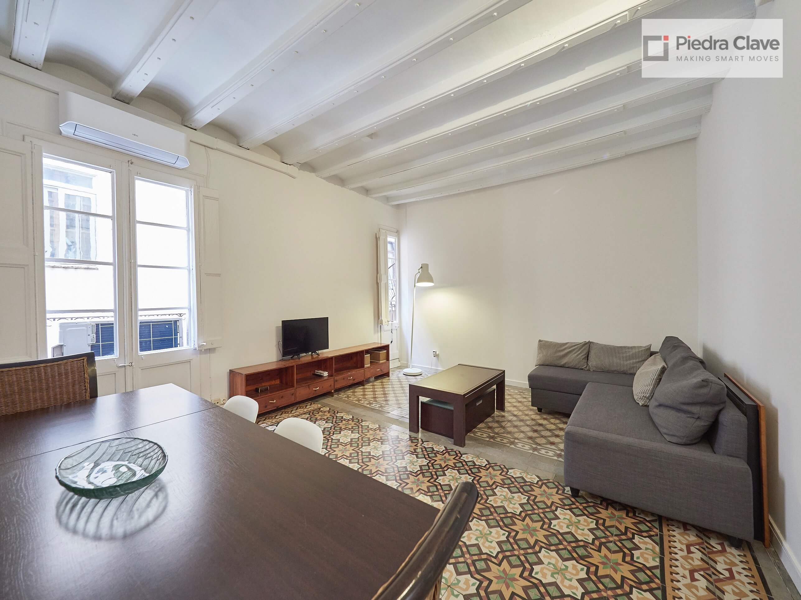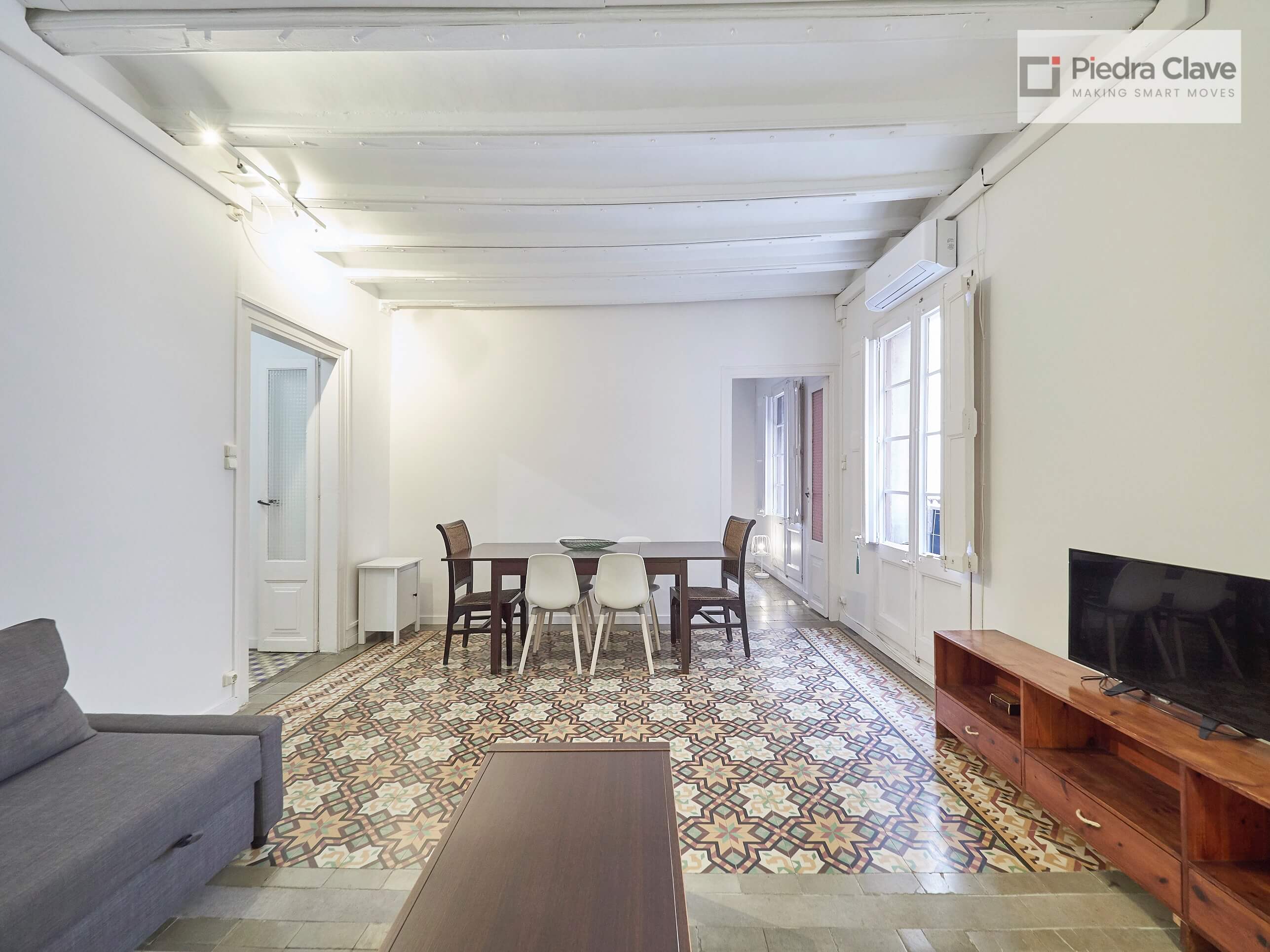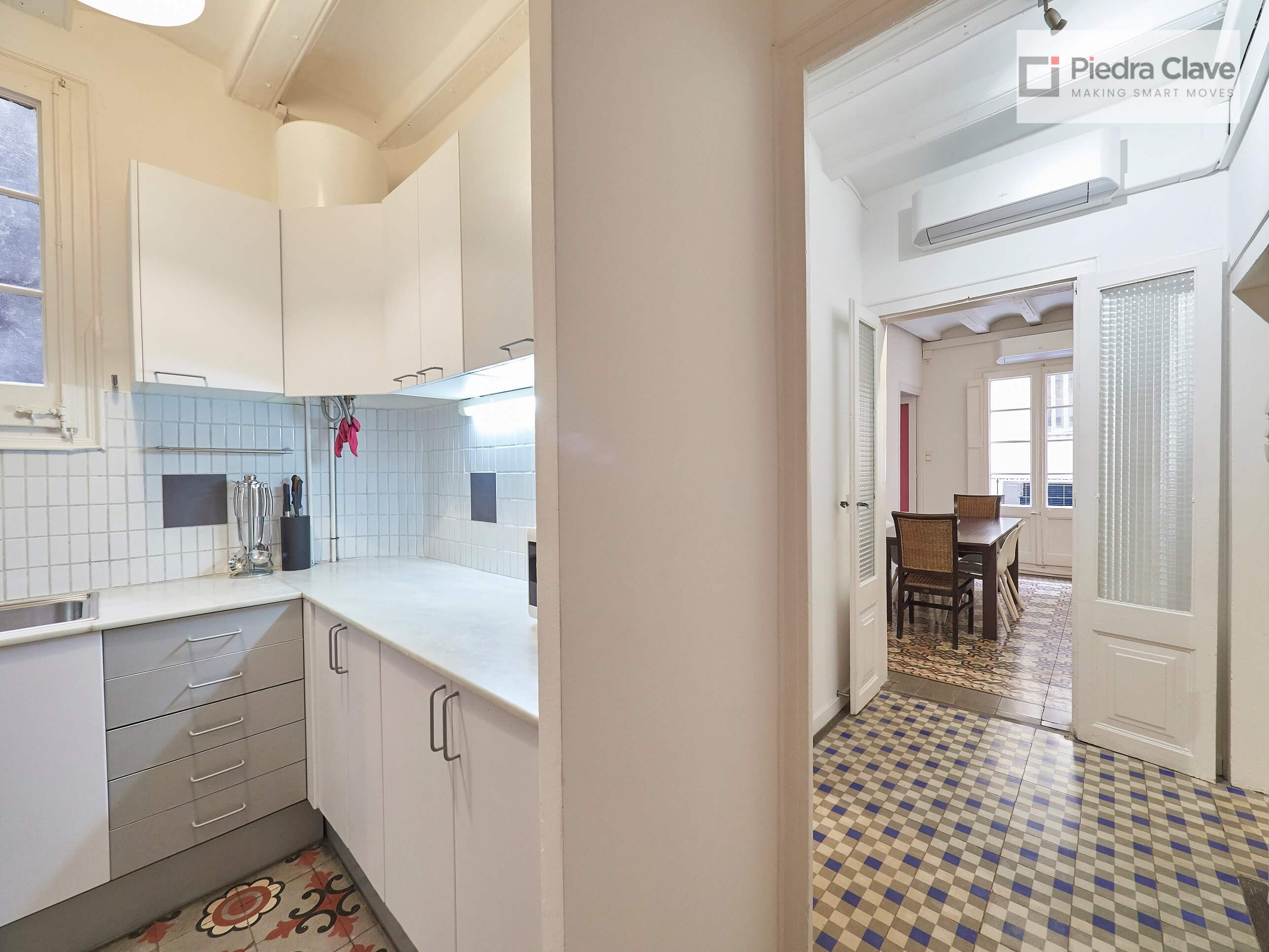 This apartment could not be better located with better light! It is in a classic corner of the Eixample. A short walk from Diagonal and Passeig de Gracia, and located in a very well maintained building.