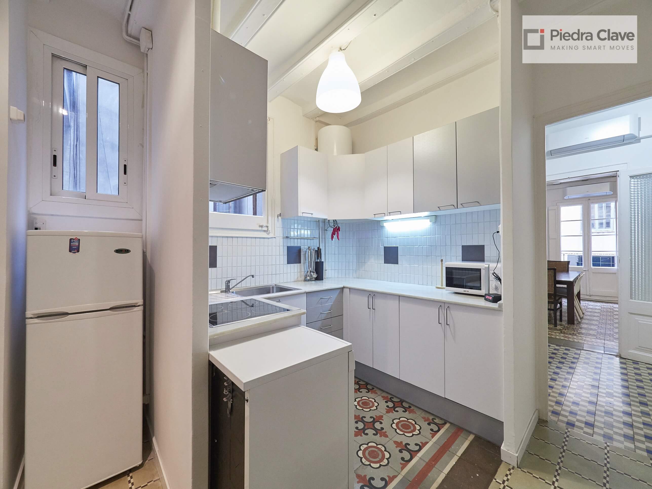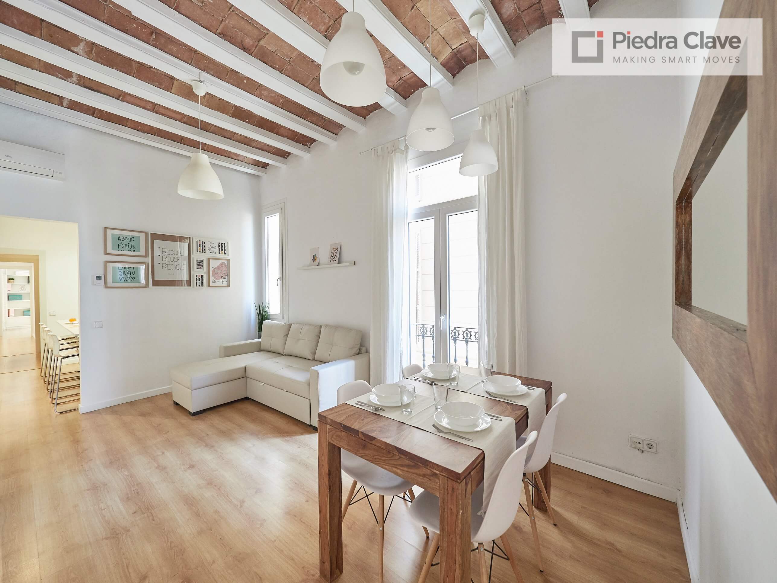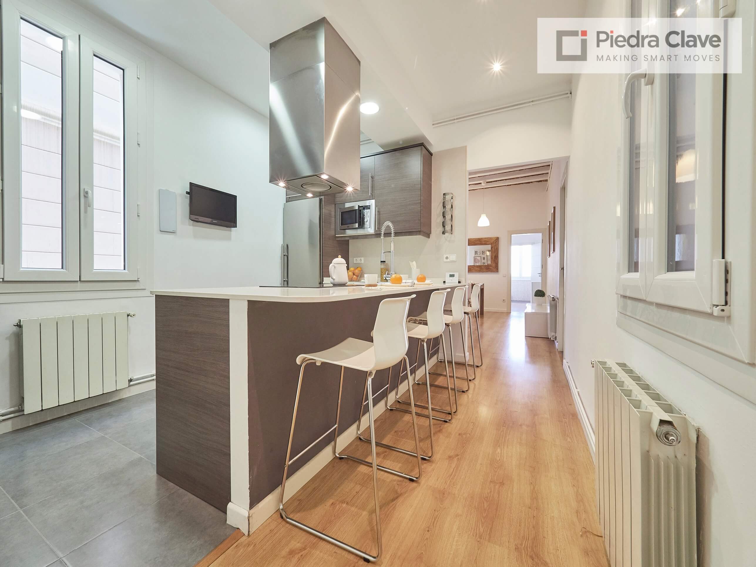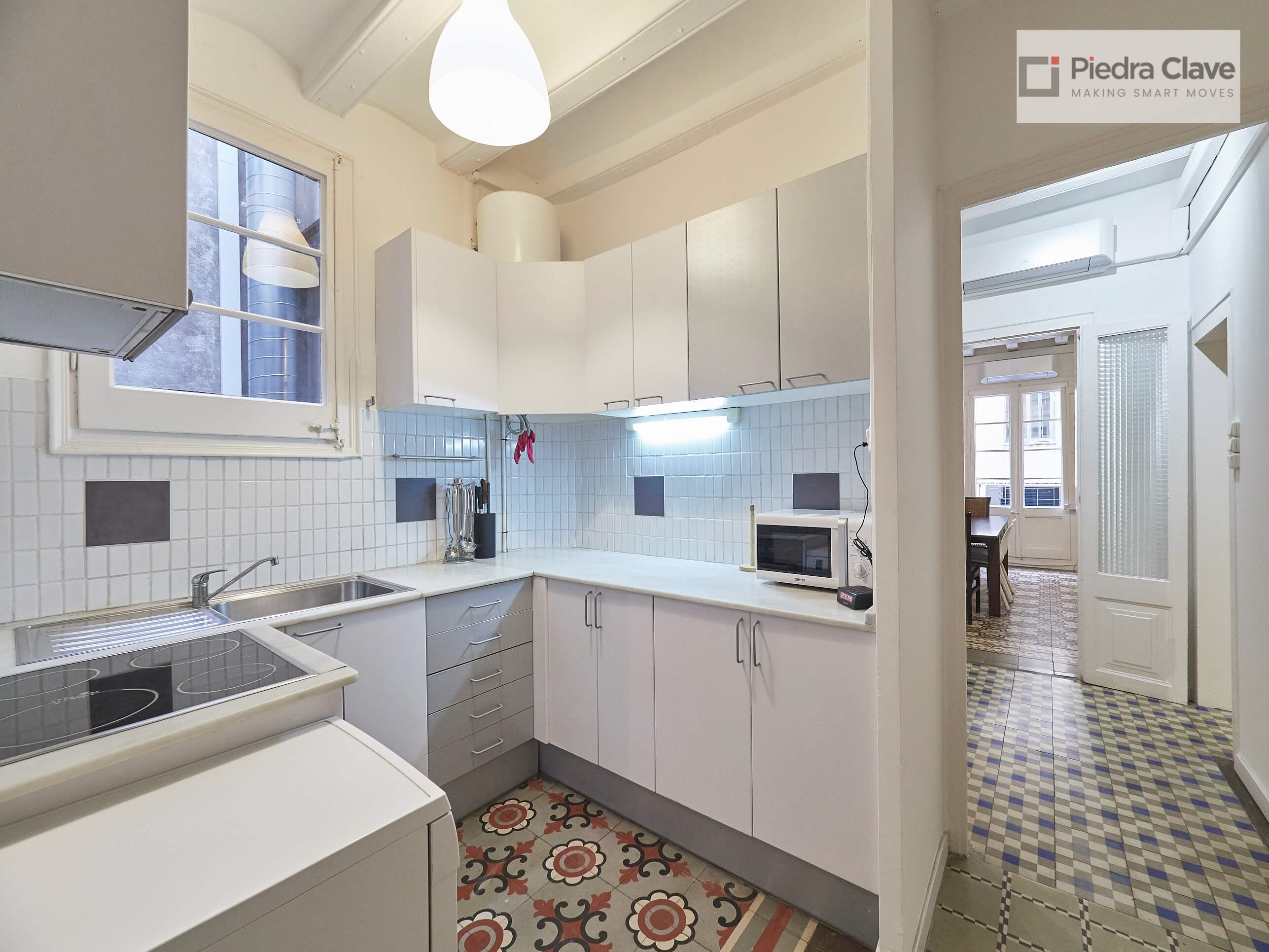 This apartment could not be better located with better light! It is in a classic corner of the Eixample. A short walk from Diagonal and Passeig de Gracia, and located in a very well maintained building.
